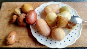 Aardappelen garen in de Wolcocon gaat zonder nadenken. Zeker als je aardappelen in de schil neemt. Je kan zelfs een mix van heel grote en heel kleine aardappelen in 1 pot garen.